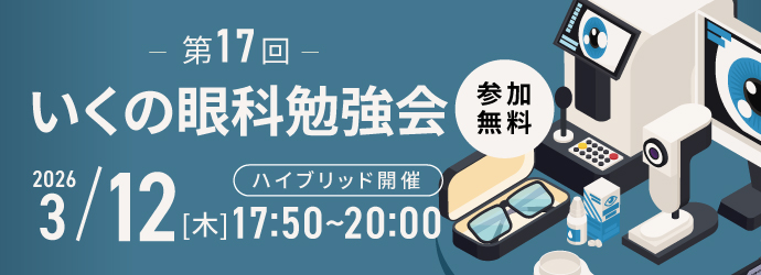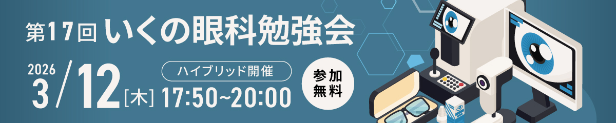 第17回いくの眼科勉強会は、特別講師として小児近視をご専門とされる稲澤かおり先生と、網膜硝子体、眼循環研究をご専門とされる長岡泰司先生をお招きいたします。